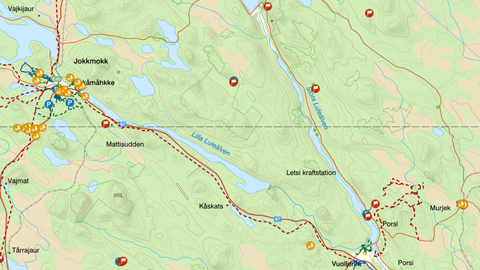 Friluftskartan visar utflyktsmål, vandringsleder, skoterleder, skidspår - och mer där till.
