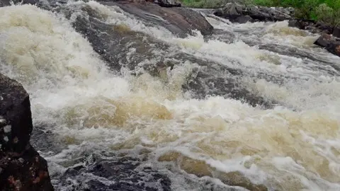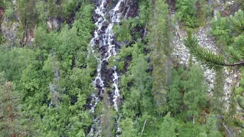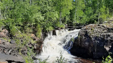 Ett vackert vattenfall i Jokkmokks fjällvärld.
