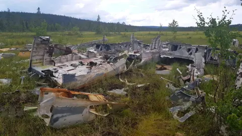 Vraket efter ett brittiskt bombflygplan som kraschade på en myr väster om Porjus under andra världskriget.