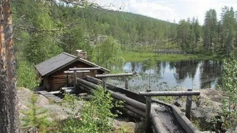 En historisk plats med gamla dammluckan från Auvakkojaure.