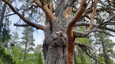 Den ståtliga tallen på toppen av Porjusberget, är troligen en av Sveriges äldsta tallar, kanske 700–800 år.