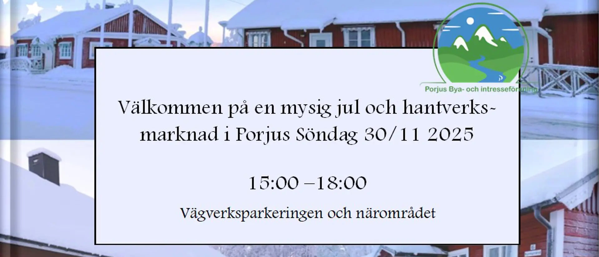 Välkommen till en mysig jul- och hantverksmarknad i Porjus söndag 30 november klockan 15.00-18.00.