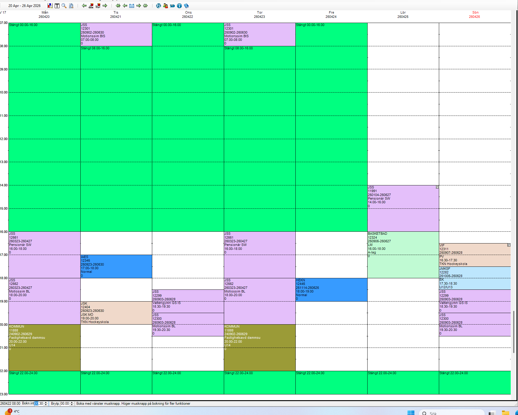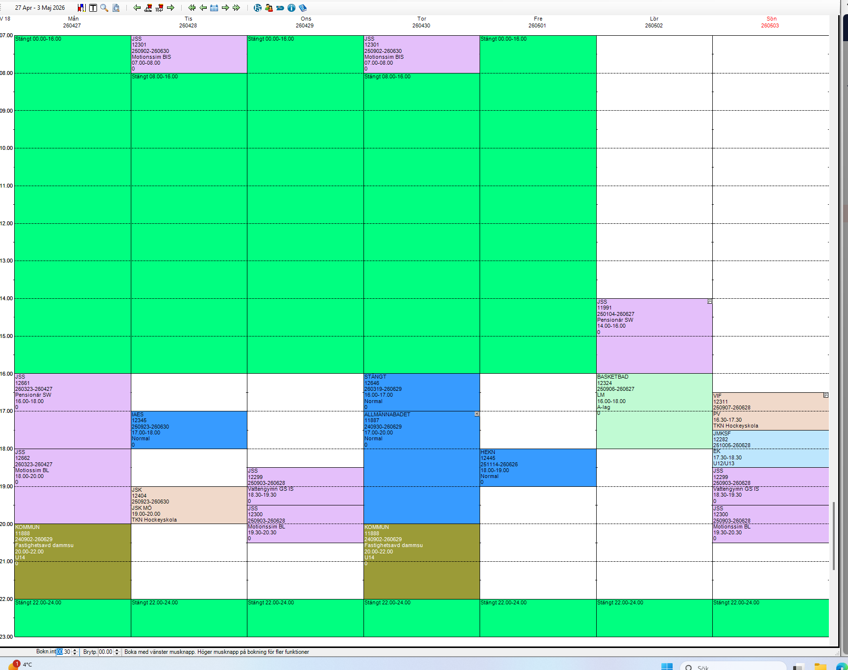 Bokade tider för vuxna kan om- eller avbokas av kultur- och fritid till förmån för verksamhet för barn/unga.