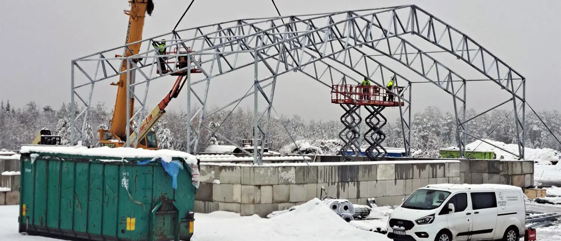Om du varit nere till ÅVC i Jokkmokk har du kanske sett tälthallen med betongblock och stålstomme – det är vår nya omlastningsstation som börjar ta form.