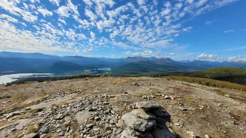 Toppen av Snjerak ligger 844 möh med fin utsikt över Kvikkjokksdeltat och in mot Sareks toppar.