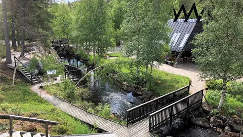 Besök Fjällträdgården, en grönskande oas vid den forsande Kvarnbäcken.